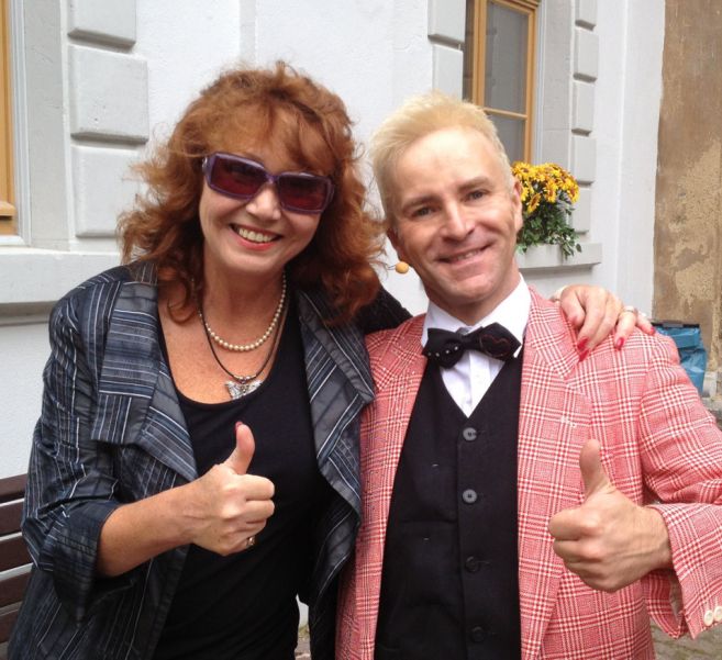 Phantaro (als Robot-Man bei Dreharbeiten) mit der Schauspielerin Arzu Bazman (In aller Freundschaft)