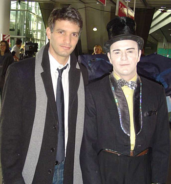 Phantaro (als Robot-Man bei Dreharbeiten) mit dem Schauspieler Luca Zamperoni (SK-Kölsch)